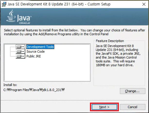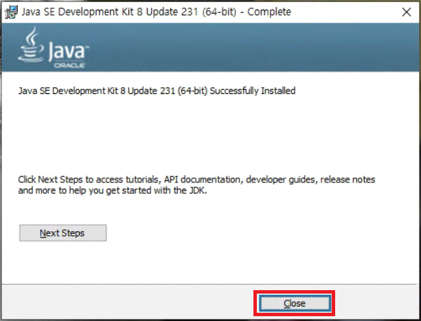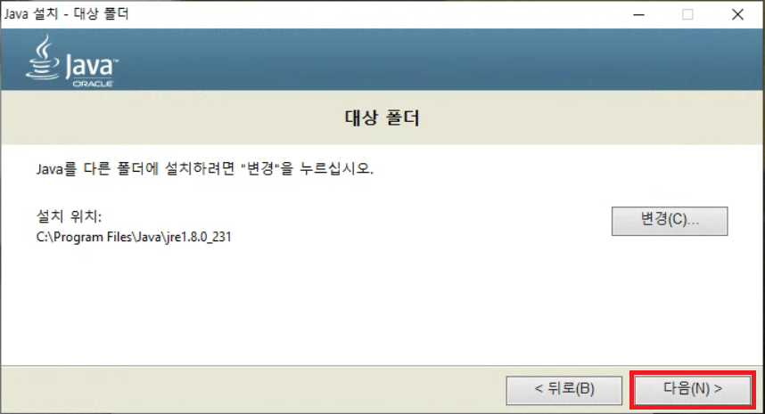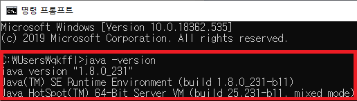 이렇게 Java(1.8.0_231)가 설치가 완료됐습니다.