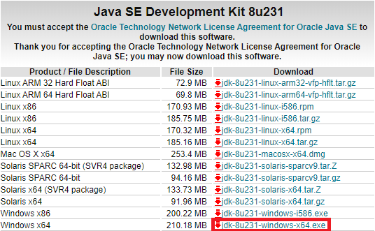 ※ 만약 다운로드 받으실때 8u231가 보이지 않는다면 높은 버전을 사용하셔도 무방합니다.