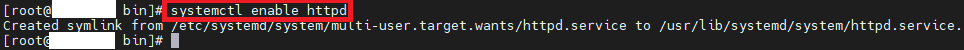 2. 콘솔창에서 'systemctl enable httpd'를 입력하여 서비스를 등록합니다.