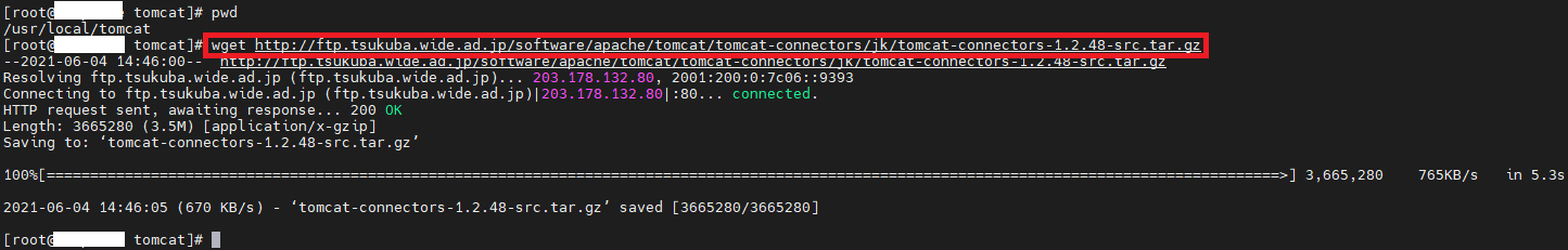 1. 콘솔창에서 'wget http://ftp.tsukuba.wide.ad.jp/software/apache/tomcat/tomcat-connectors/jk/tomcat-connectors-1.2.48-src.tar.gz'를 입력하여 tomcat-connector를 다운받습니다.