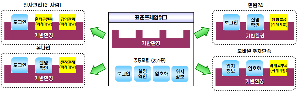 이에, 전자정부 표준프레임워크는 다양한 공통기능을 표준화해 중복개발을 방지했습니다.